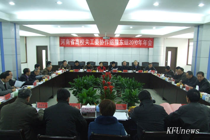 会上,党委书记莫华林代表学校对省市关工委领导、豫东协作组各高校关工委领导的到来表示热烈欢迎,并介绍了我校近来发展状况和我校关工委开展工作的基本情况。河南大学、河南中医学院等豫东组11所院校关工委负责人围绕“深入贯彻文件精神、更新关工委工作理念、实现关工委工作创新”这一会议主题交流了各校关工委工作开展情况,加深了对高校关工委工作性质和工作原则的认识,明确了下一阶段关工委工作的任务、目标和方向。省教育厅关工委副主任杨王善、秘书长毕明春听取了各单位工作汇报,并就下一步工作提出指导性意见。杨主任指出,高校关工委要进一步加强对教育部教党〔2009〕20号文件:《中共教育部党组关于加强全国教育系统关心下一代工作委员会建设的意见》和《国家中长期教育改革和发展规划纲要(2010—2020年)》学习贯彻,加强各级关工委自身建设,不断扩展和利用关心下一代工作教育阵地和活动阵地,在青年教师培养、师德师风建设、学风建设、教学督导、特邀组织员工作方面再上新台阶。开封市关工委常务副主任茹建国对会议的召开表示祝贺,他强调各级关工委要增强做好关心下一代工作的责任感和使命感,尤其在“兰青工程”方面做出积极探索,不断开创关工委工作新局面。最后,豫东协作组组长长单位领导、河南大学关工委常务副主任袁顺友对会议做了总结,认为会议完成了预定任务,会议形式在一定程度上有所创新,并希望以后豫东协作组各高校加强沟通,共同进步。袁组长对我校承办会议所作出的工作给予了高度评价。