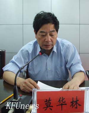 紧接着,莫书记在大会上作了深入开展创先争优活动动员报告,莫书记在报告中重点强调了三点意见。第一要统一思想,领会内涵,深刻领会创先争优活动的重大意义;第二要联系实际,突出重点,全面推进创先争优活动的深入开展,具体要做到“三个结合”,就是要与科学发展观长效机制相结合,要与推进干部作风建设相结合,要与我校的省级示范性建设、党建评估、北校区建设等工作相结合;第三要成立领导机构,精心谋划,制定工作方案,周密部署,强化宣传,切实加强对创先争优活动的组织领导;第四要加强指导检查,及时了解活动进展情况,推动活动顺利开展。