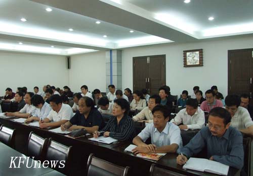 本站讯 5月11日下午,我校在行政楼会议厅召开反腐倡廉警示教育暨创先争优活动动员大会。校党委书记莫华林作动员报告,校纪委书记、工会主席范金梅作反腐倡廉形势报告,校领导拜五四、储建新、万是明、赵辉出席会议,全校各部门中层正副职干部参加会议。大会由校党委副书记、副校长储建新主持。