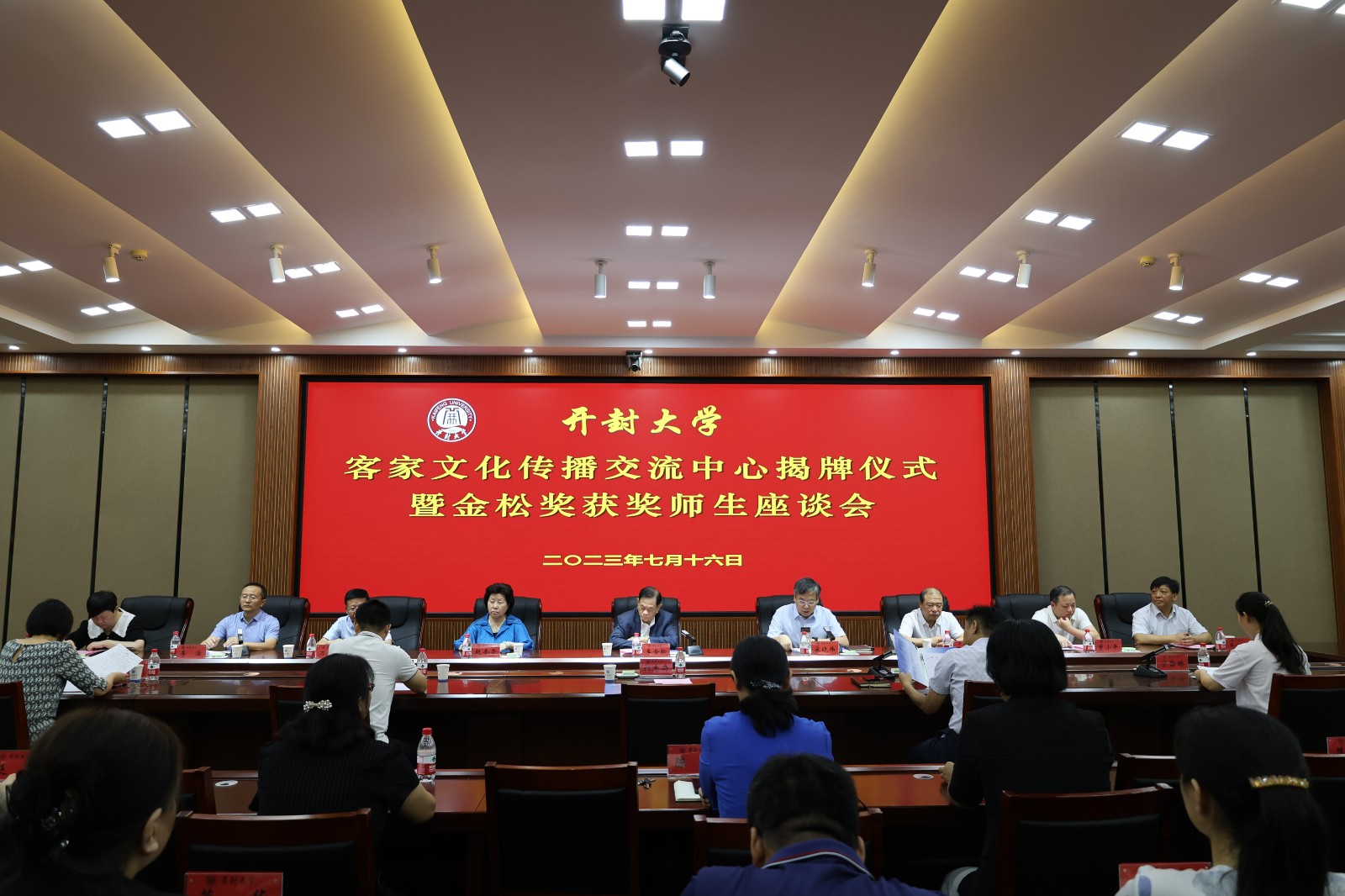 世界客属总商会主席、总会长、bat365在线官方网站董事会董事长李金松,钧帝国际集团总裁赵奎荣,bat365在线官方网站党委副书记、校长宋晓炜,bat365在线官方网站党委副书记储建新,开封日报报业集团党委委员、副总编辑、开封日报执行总编辑蔡小俊等参加了揭牌仪式。