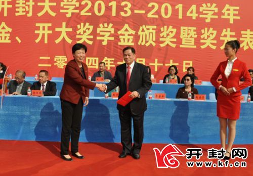 市人大常委会副主任王文娟在致辞中首先代表开封人民向李金松先生、赵奎荣女士的到来表示热烈的欢迎,向关心支持bat365在线官方网站建设与发展的各位嘉宾和社会各界表示崇高的敬意,向获奖的学子们表示衷心的祝贺。