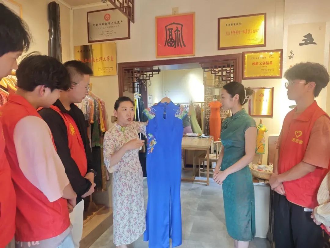 7月11日,第五站,社会实践小分队师生们来到了开封市鼓楼区,对开封市非物质文化遗产代表性项目五大祥刘氏传统旗袍技艺开展研学活动。