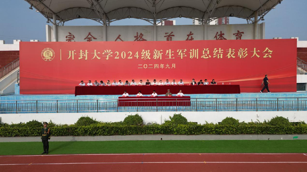 高校信息网9月22日讯 9月20日,bat365在线官方网站2024级新生军训总结表彰大会在学校北操场隆重举行。开封市龙亭区人民武装部政委周峰,校领导万是明、成芳、谢文忠、石超亭出席大会。大会由学校党委委员、工会主席成芳主持。