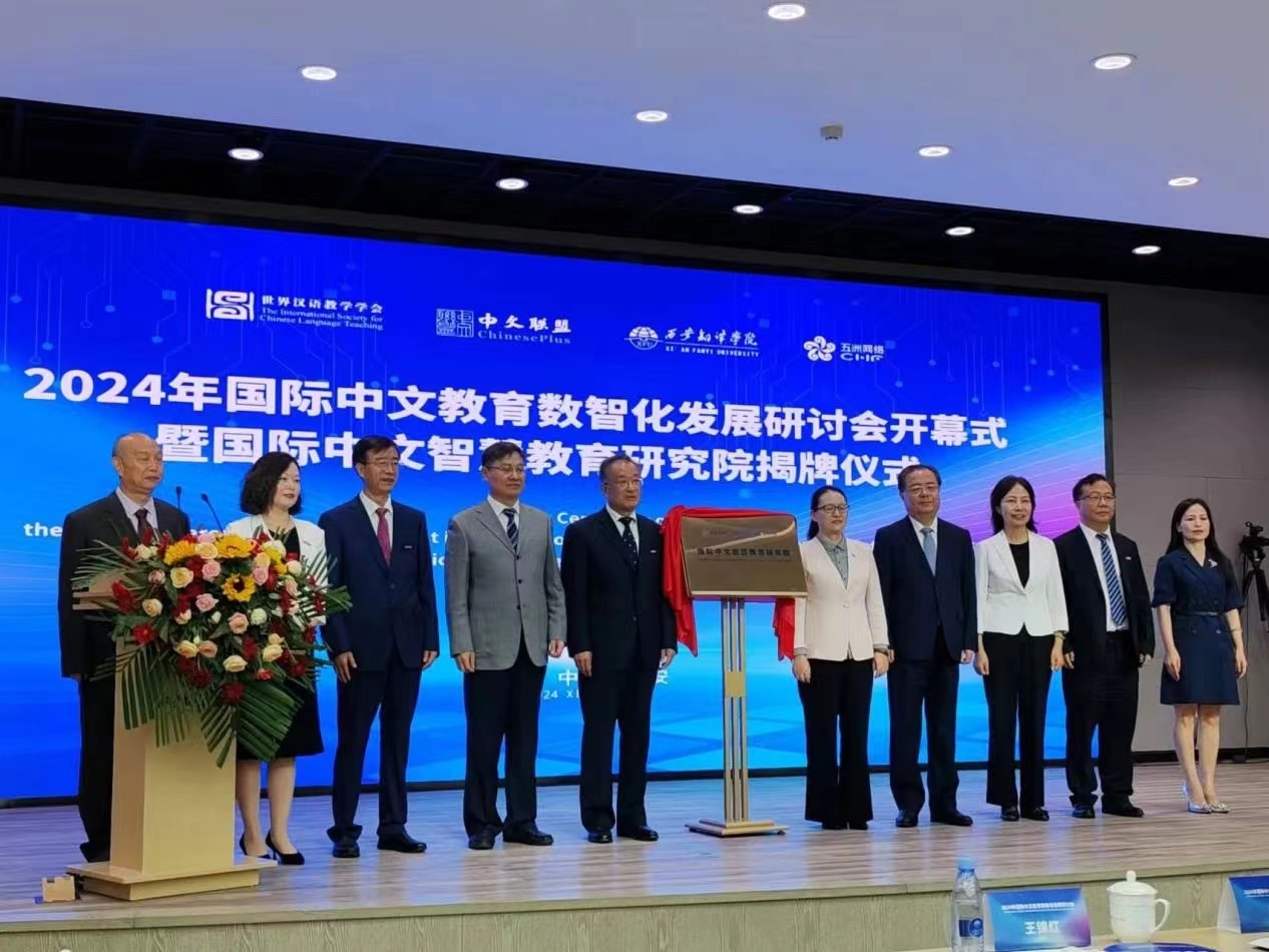 高校信息网9月22日讯 为推进国际中文教育数智化、网络化、专业化、协同化创新改革,9月20日,2024年世界汉语教学学会智慧教育分会年会——国际中文教育数智化发展研讨会在西安翻译学院成功举办。来自35个国家(地区)、297所院校、企业、教育机构的近600余位代表线上线下共襄智慧教育分会年度盛会,共话数智化前沿技术、应用成果与未来趋势,共绘国际中文教育数智化创新发展美好蓝图。