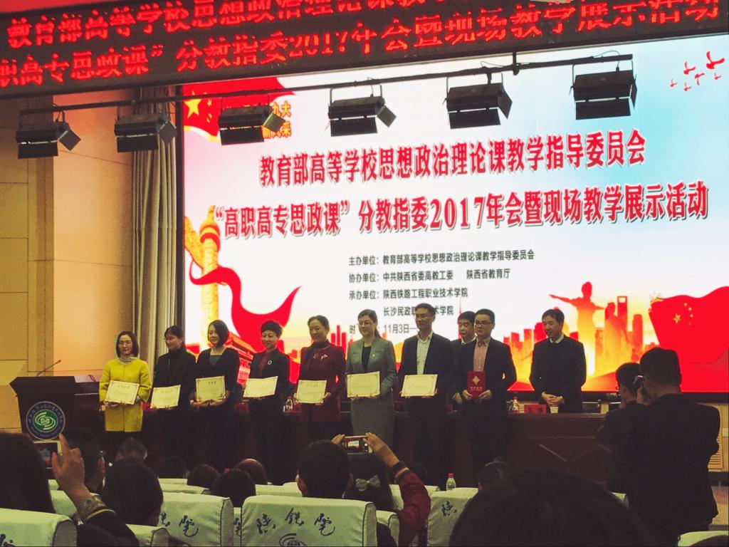 11月3日,由教育部高等学校思想政治理论课教学委员会主办的“高职高专思政课”分教指委2017年会暨现场教学展示活动在陕西铁路职业技术学院举行,我校思想政治理论教研部张兰玲教授在活动中获得了教学展示一等奖,被评为2017“全国高校思想政治理论课教学标兵”。