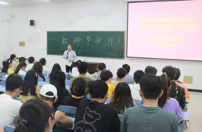9月10号晚,思政部组织开设的素质选修课《开封红色故事》在15号教学楼121教开课。校党委副书记储建新,校党委委员、党委宣传部部长陈岩以及思政部
