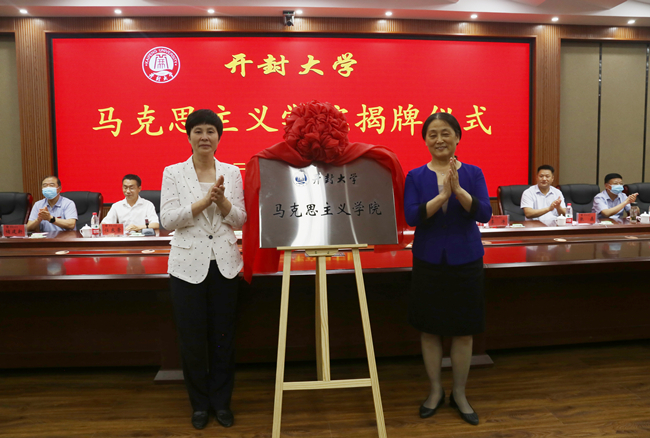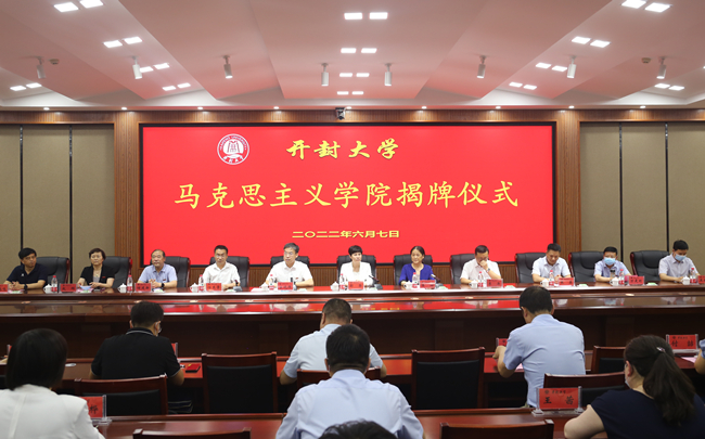 6月7日下午,马克思主义学院成立揭牌仪式在2号楼第二会议厅隆重举行。开封市委常委、市委宣传部部长邵华,市委宣传部副部长李涛,河南大学马克思主义学院执行院长任东景、河南开封科技传媒学院马克思主义学院院长张磊、黄河水利职业技术学院马克思主义学院院长焦红强、开封文化艺术职业学院思想政治理论教学部主任张鹤鸣受邀出席仪式。我校校党委书记陈灿、校长宋晓炜、校党委副书记储建新、副校长万是明、副校长赵辉,以及相关职能部门负责人、各院党总支书记、马克思主义学院领导班子和全体思政课教师及学生代表参加揭牌仪式。仪式由宋晓炜主持。
