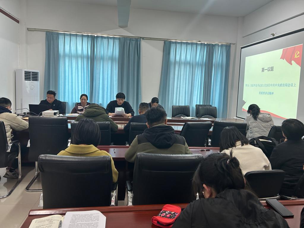 会上,全体党员面向党旗,在苏会君同志领誓下重温了入党誓词。组织开展第一议题学习,传达学习习近平总书记在1月20日中共中央政治局会议上的重要讲话精神。卢慧勇刘霄霄两位老师领学了习近平总书记2025年2月17日出席民营企业座谈会上的重要讲话精神。2月份过政治生日的刘慧辛老师对照党章要求,结合学习等活动,谈了自己在坚守党的初心使命、教书育人等方面的感想其他党员向刘老师提出了希望和建议。最后,开展校园安全理论培训,全体教师安全防范意识得到有效提升。