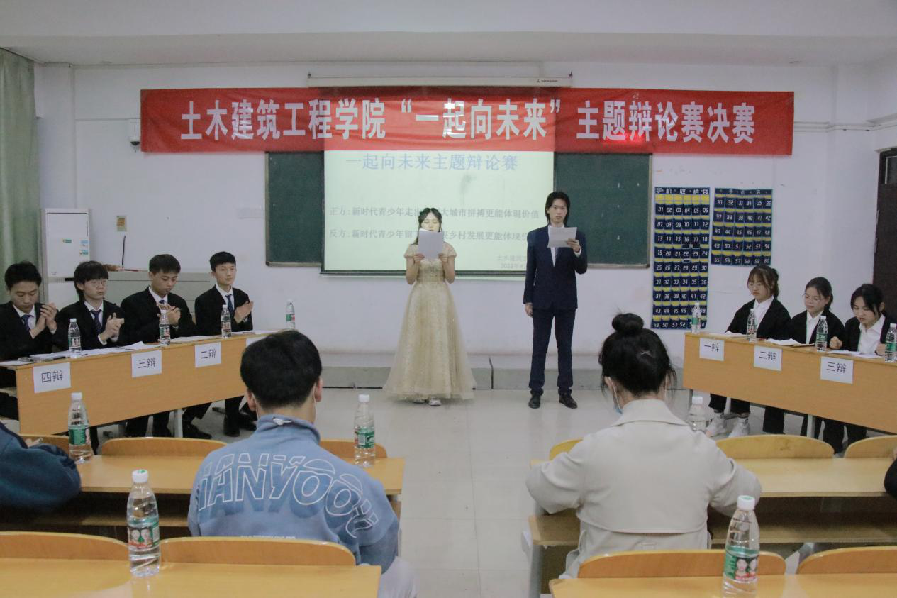 4月18日晚7点,土木建筑工程学院“一起向未来”辩论赛决赛在3号教学楼203教室举行,学院2021级辅导员陈玫含以及部分2021级同学参与了本场辩论赛。经过前期小组赛的精彩角逐,共两支参赛队伍晋级决赛。