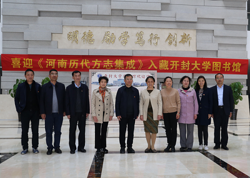 4月14日,河南省地方史志办公室向我校捐赠了《河南历代方志集成》《河南省志》《传承》《河南历代诗人咏河南》等系列文献。我校党委书记陈灿、党委委员工会主席成芳、党委委员副校长谢文忠代表学校接受捐赠,陈书记向河南省地方史志办公室党组书记、主任管仁富颁发了赠书感谢状。