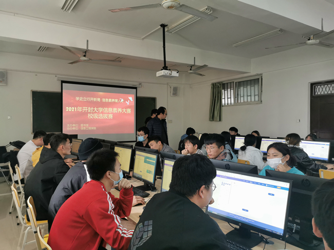 10月21日中午,由我校图书馆和信息工程学院共同组织的“河南省高职院校信息素养大赛”校级选拔赛在3号教学楼421机房拉开了帷幕。比赛采用网上注册、网上答题的方式进行,共有80多位学生参加,决出一等奖5名,获得一等奖的同学将代表学校于本月底参加省赛。