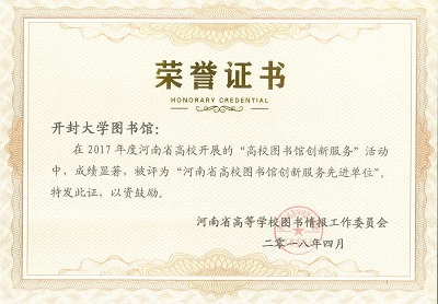 4月21日,河南省高校图书馆2018年馆长会议在河南师范大学召开,我校图书馆在2017年度创新服务活动中被授予“河南省高校图书馆创新服务”先进单位称号。