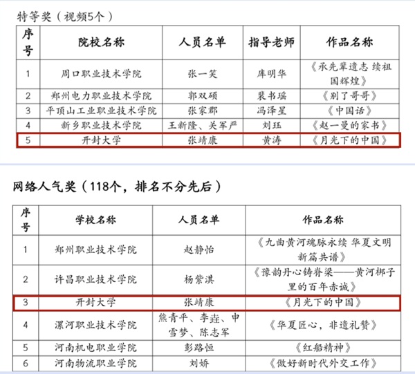 近日,由河南省高校图书情报工作委员会、“学习强国”河南学习平台主办,以“赓续华夏文脉·唱响时代新篇”为主题的第六届河南省高校诵读大赛落下帷幕。我校数字经贸学院张靖康同学荣获学生组特等奖及网络人气奖;图书馆孙伟老师荣获教师组二等奖;图书馆孙伟、张玲、孟颖、赵雨静、宋馨老师荣获教师组三等奖。