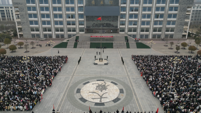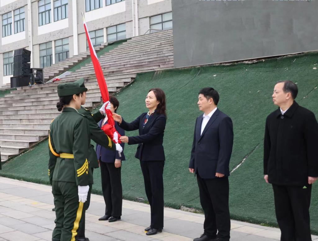 国旗护卫队从校党委书记谭贞手中接过国旗