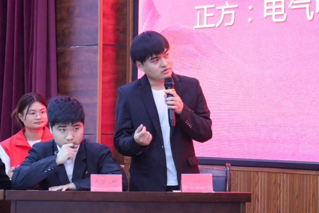 决赛在电子电气工程学院代表队和机械与汽车工程学院代表队之间展开,正反方以“AI(人工智能)对人类社会发展的作用”为辩题展开激烈交锋。现场气氛热烈,参赛选手们旁征博引,妙语连珠,通过开篇立论,攻辩小结,自由辩论和总结陈词四个环节进行精彩辩论,尽展思辨风采。