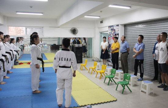 我校历来高度重视跆拳道比赛,提前一年从各院部跆拳道专选课中选拔学生,最终遴选了6名运动员组成代表队参赛。队员们在学习之余,进行了高强度的体能训练和技术训练。赛前,中国大学生体育协会跆拳道分会副主席、河南省学生体育总会跆拳道协会主席、校党委副书记储建新多次到训练现场慰问并指导队员们训练,做好赛前动员。储书记鼓励同学们要刻苦训练、不畏强手、努力拚搏、展示实力,树立良好的开大形象,并预祝同学们在2017年中国大学生跆拳道锦标赛上取得优异成绩。