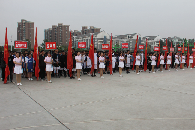 本站讯 10月25日下午,我校在篮球场举行以“走下网络,走出宿舍,走向操场”为主题的2018年新生运动会开幕式活动。校工会主席成芳出席了开幕式,校党委宣传部、学工部、团委、体育教研部、后勤服务中心等部门负责人及500余名新生参加了开幕式。开幕式由团委副书记杨艳丽主持。