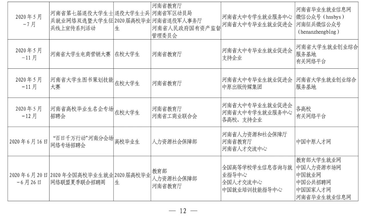 河南省教育厅等十部门关于联合开展河南省2020年高校毕业生
