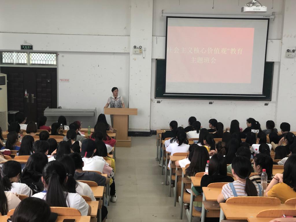 期末考试将至,为了引导全体学生树立“诚信考试,文明做人”的理念,以积极向上的精神状态迎接考试,2019年6月21日,外国语学院各班分别召开了“践行社会主义核心价值观”主题班会。外国语学院党总支书记孟祥茹,副院长秦新峰和辅导员陈姗姗、时会慧老师一起参加了主题班会。