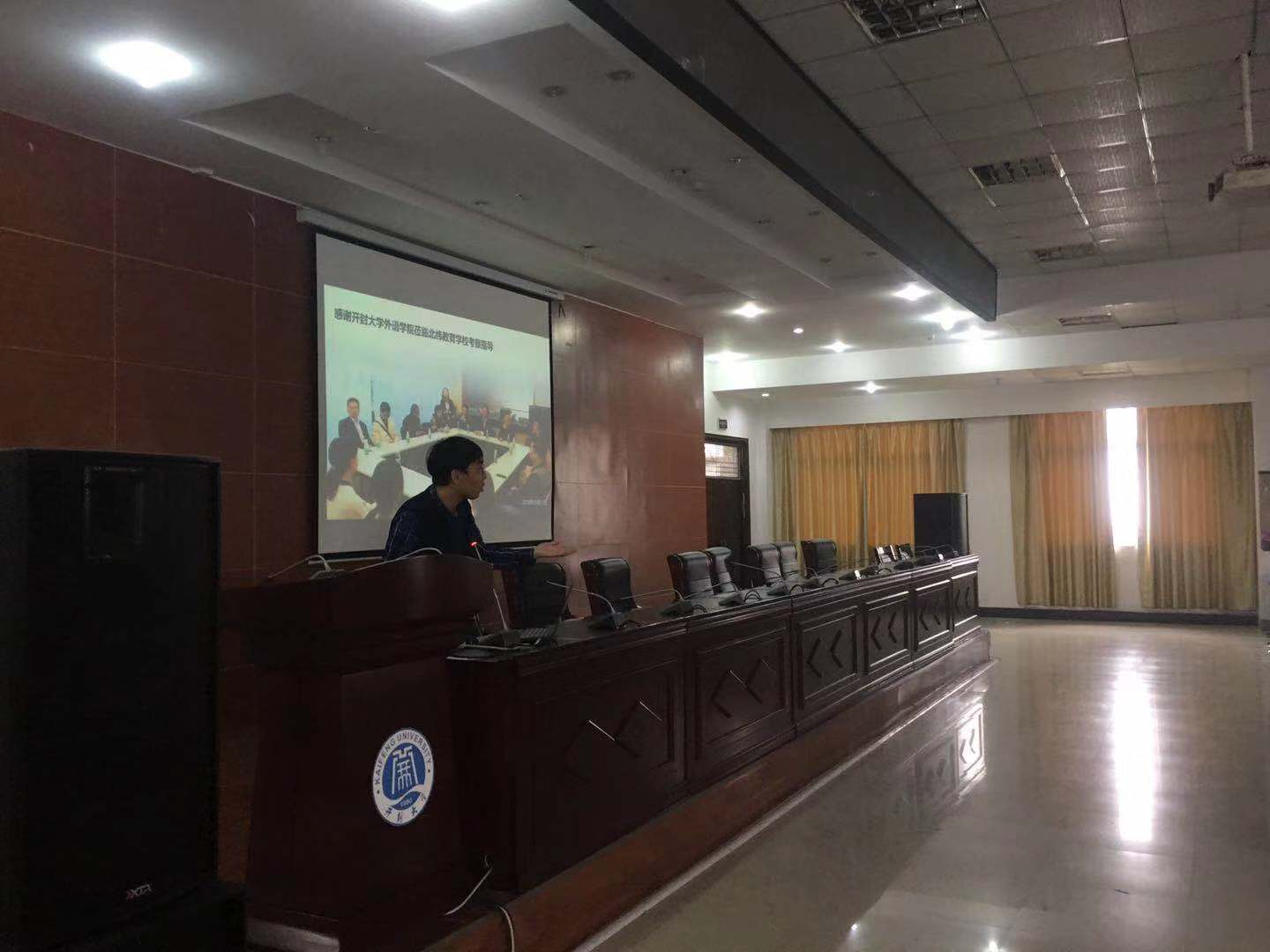 10月25日下午,在8#报告厅,外国语学院邀请河南大学文化产业公司常务副总裁张绍辉博士给全院学生举办一场职业生涯讲座,院长张九明、副书记梁波参加此次讲座。讲座的题目为《寻找开大锦鲤——致青春路上的你》。