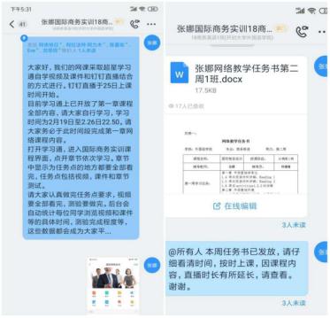 2.为了能更好的展现课堂教学的优势,外语学院采用了钉钉直播的形式开展线上教学,不但能够让学生直观的感受课堂气氛、有效的进行师生互动,更能准确的地掌握学生的学习状况,直播结束后还可以进行保存和回放,方便学生随时复习和巩固。学生反馈较好,教学成效显著。