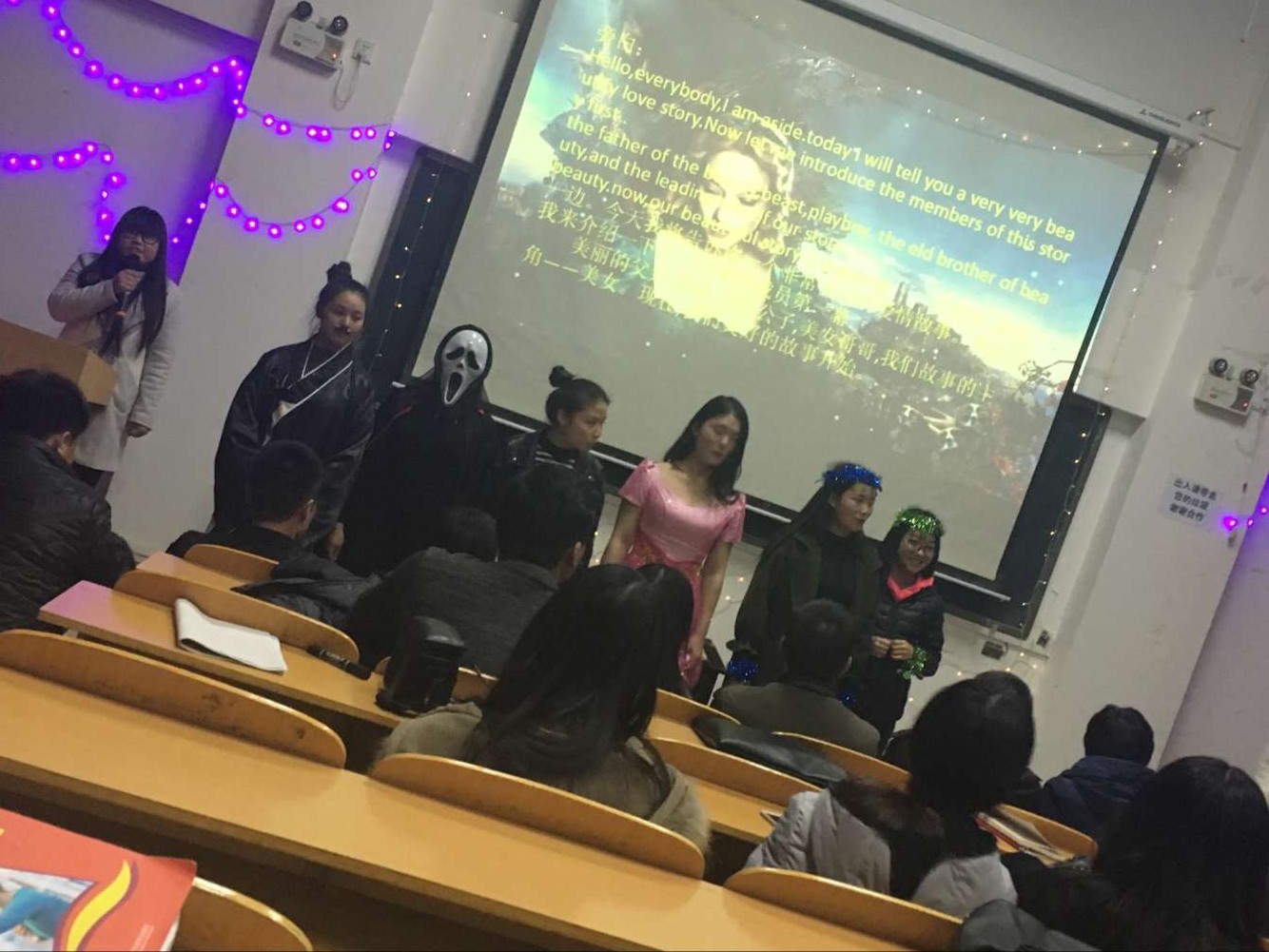 2016年11月29日晚7点外国语学院周末文化广场话剧大赛在外国语学院17号楼508教室举行,参加此次活动的有龚国久老师,冯雪芳老师,吴贵武老师。大一全体新生和部分大二学生。