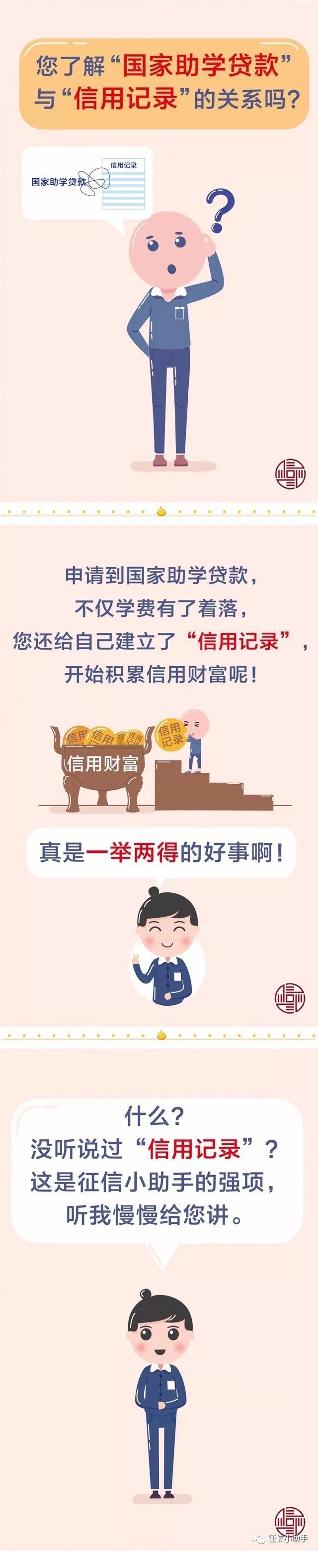 申请到“国家助学贷款”,您就给自己建立了“信用记录”!那么,您了解“国家助学贷款”与“信用记录”的关系吗?本期征信小助手就来告诉您。