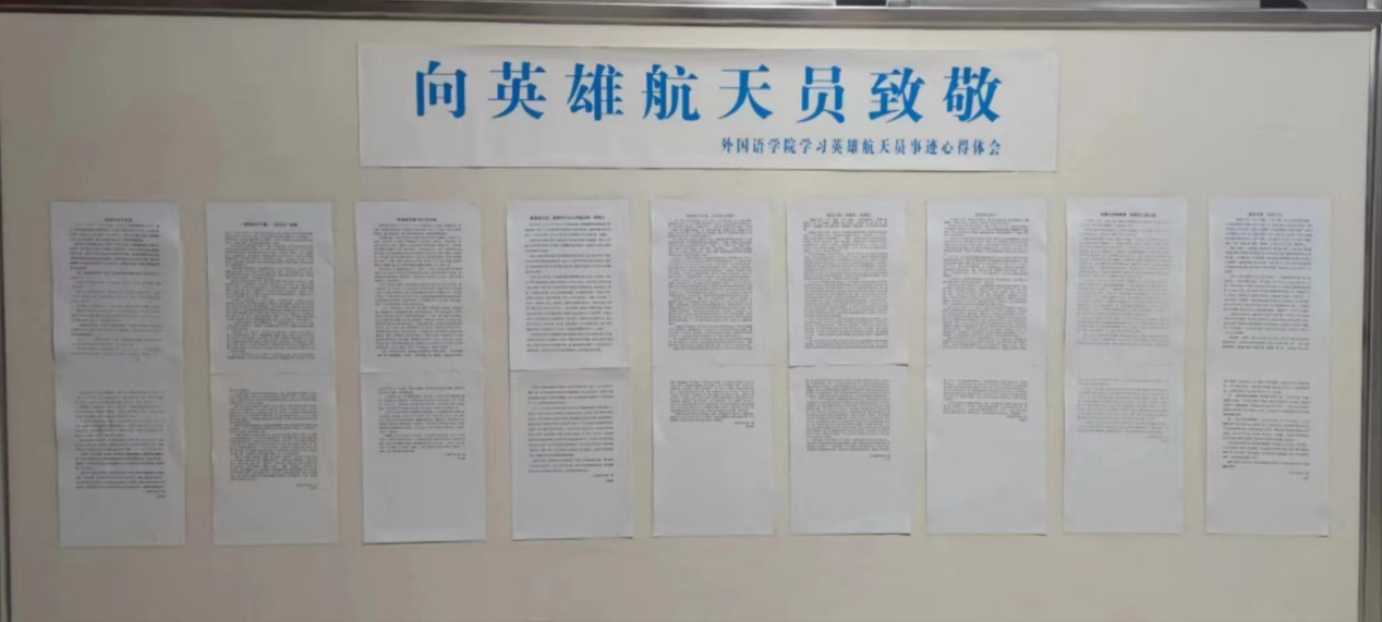 神舟十七号发射升空,神舟十六号成功着陆。为进一步传承和弘扬祖国航天事业所蕴含的卓越精神,激发同学们的爱国之情,外国语学院团总支开展了向英雄航天员致敬主题活动。