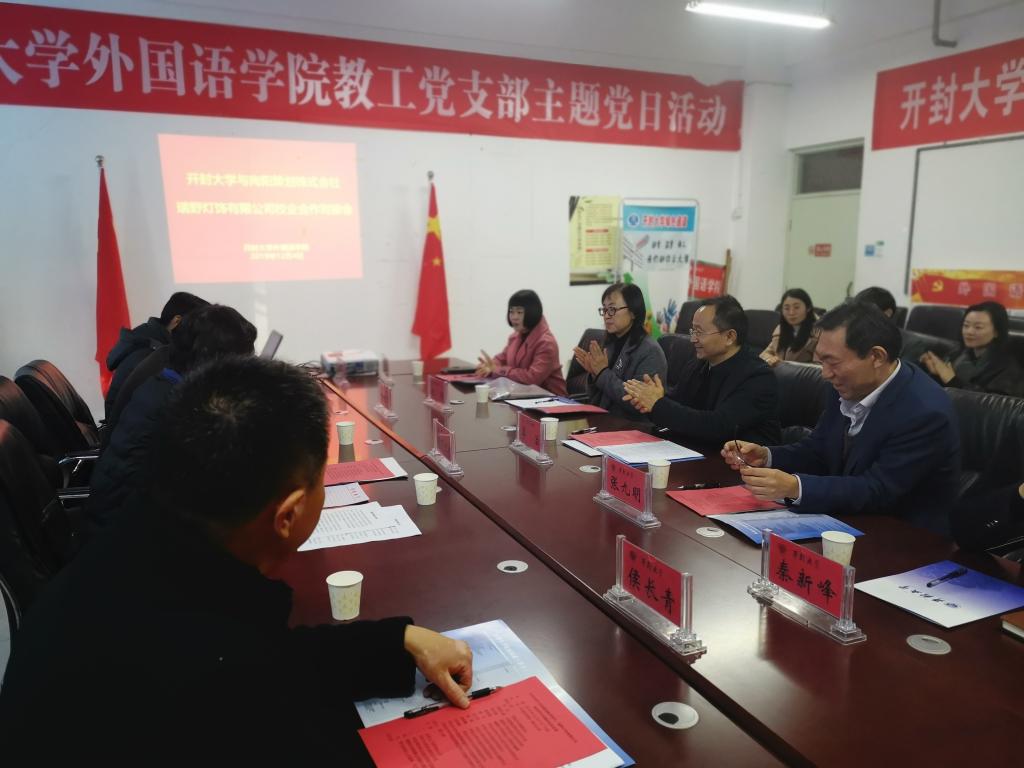 洽谈会上,张九明院长介绍了外国语学院的专业设置和人才培养模式,希望和与会企业就人才培养方案、课程体系建设、校企合作等方面展开深度融合,精准对接服务地方经济。双方在热烈友好的氛围中开展洽谈,最终就开展“专班式”人才培养和设立“专班奖学金”达成初步意向。