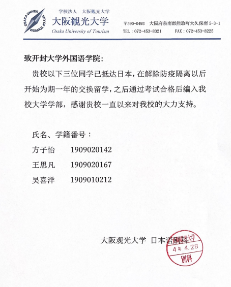 外国语学院与日本大阪观光大学交换生顺利抵达日本
