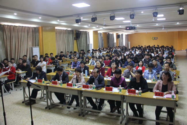 4月26日下午,由我校党委宣传部、学生工作部、校团委和思想政治理论教研部联合举办的“心中有信仰,脚下有力量”马克思主义经典著作诵读大赛在16号楼报告厅举行。校党委副书记储建新、工会主席成芳出席活动,校党委组织部、纪委、教务处、思想政治理论教研部、五年制专科部等部门负责人为比赛担任评委,思想政治理论教研部全体教师以及三百名学生观看了本次比赛。