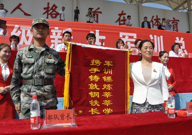 我校党委书记陈灿向承训部队赠送锦旗,表达了对承训教官们崇高的敬意和衷心的感谢。