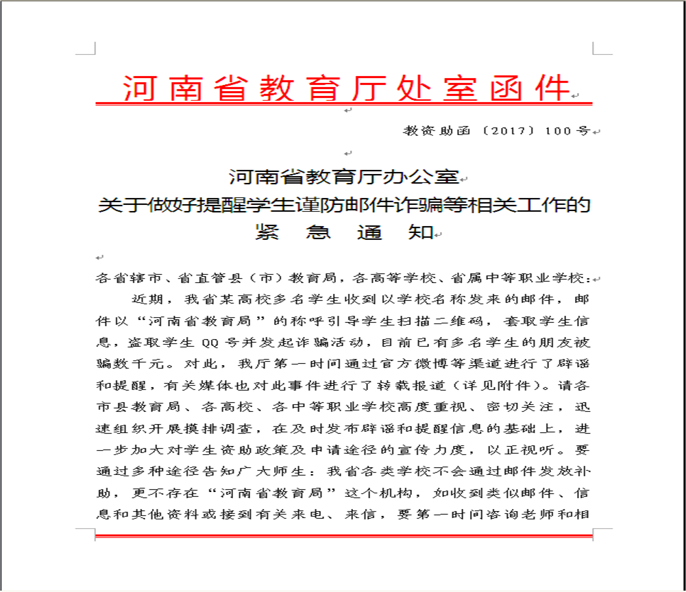 河南省教育厅办公室关于做好提醒学生谨防邮件诈骗等相关工作的紧急通知