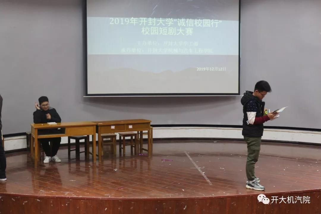 为塑造积极向上的校园文化精神,进一步促进校园诚信文化建设,营造良好校园诚信氛围。我校于2019年12月12日下午在南五楼报告厅举行了“诚信校园行”的校园短剧大赛活动,本次活动由校学工部主办,机械与汽车工程学院承办。意在通过短剧的形式培养同学们的诚信意识。活动邀请了全校各院部19级辅导员老师担当评委,全校2019级部分学生观看了整个活动。