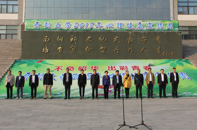 10月18日下午,我校在大观广场举行以“不负韶华,出彩青春”为主题的2018年心理健康宣传周活动启动仪式。校工会主席成芳出席了启动仪式,学生工作部、各院部党总支书记和副书记、辅导员、2018级新生参加了启动仪式。此次我校还邀请了10位校内外心理健康教育专家参加了启动仪式。启动仪式由学生处副处长付喆主持。