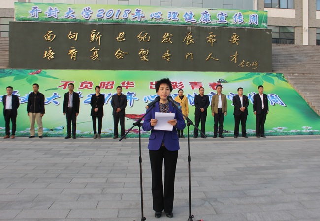 校工会主席成芳在讲话中强调,心理健康教育是提高大学生心理素质,促进身心健康和谐发展的教育,是人才培养体系的重要组成部分,也是高校思想政治工作的重要内容。成主席分别对校院两级心理健康教育中心、心理健康专兼职教师、校心理健康协会同学和班级心理委员以及全校学生提出了相关要求。最后,成主席宣布我校2018年心理健康教育宣传周启动。