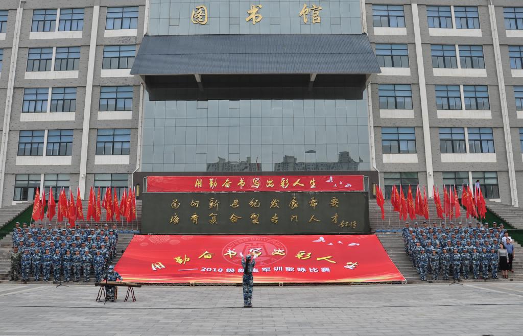 9月20日上午,我校“用勤奋书写出彩人生”——2018级新生军训歌咏比赛在图书馆前广场举行。校党委副书记储建新、工会主席成芳、新生军训团团长出席了此次活动,校党委办公室、学生工作部、团委、党委宣传部等部门负责同志,各院部党总支书记、副书记,新生辅导员,军训教官及2018级的全体新生参加了本次活动。