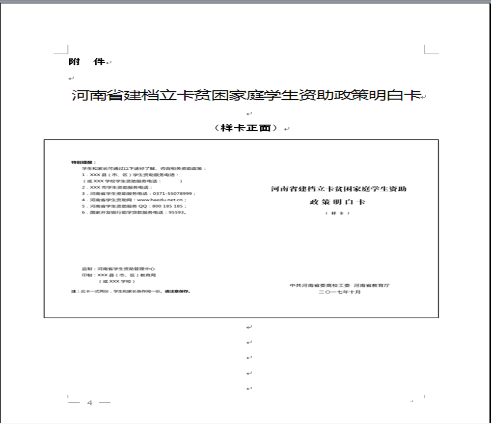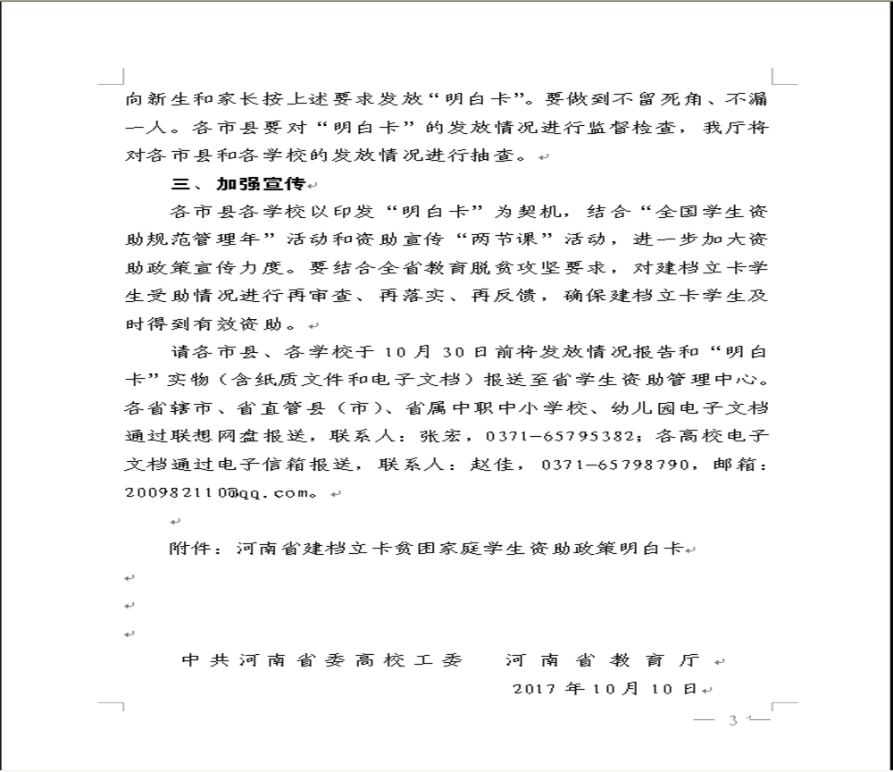 关于印发建档立卡贫困家庭学生资助政策明白卡的通知