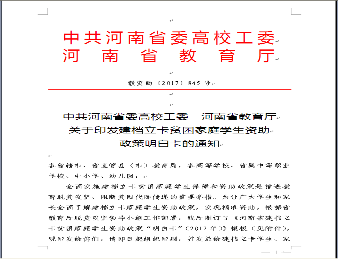 (中共河南省委高校工委 河南省教育厅教资助〔2017〕845号)