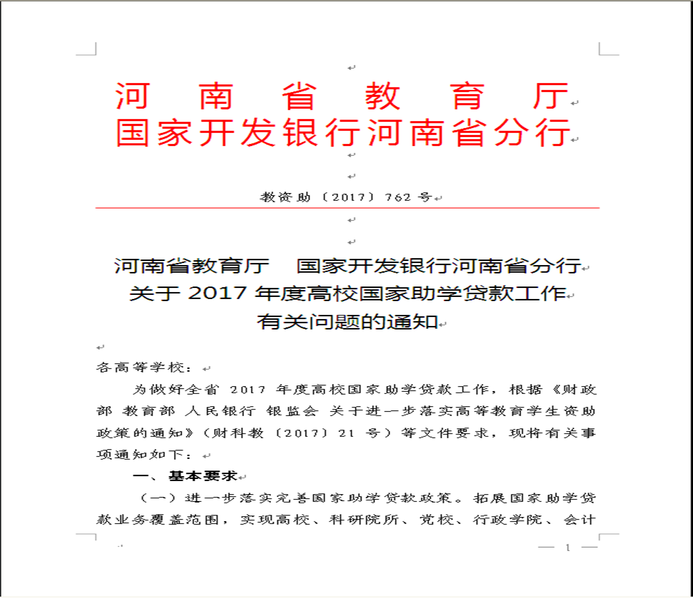 (河南省教育厅 国家开发银行河南省分行教资助〔2017〕762号)