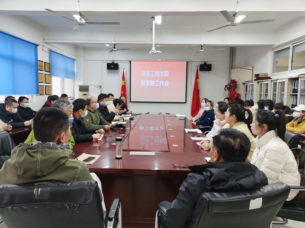 本站讯 2月16日上午,信息工程学院在3#312会议室开展新学期工作会暨新学期新课试讲活动,学院领导班子、全体教职工及学院新进人员参加了此次活动,活动由副院长李响主持。