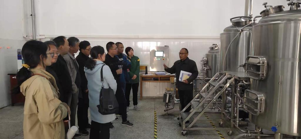 随后又到材料与化学工程学院发酵食品工程技术研究中心进行参观,材料与化学工程学院侯书记为大家详细讲解了中心平台的研究方向、运行、管理办法。