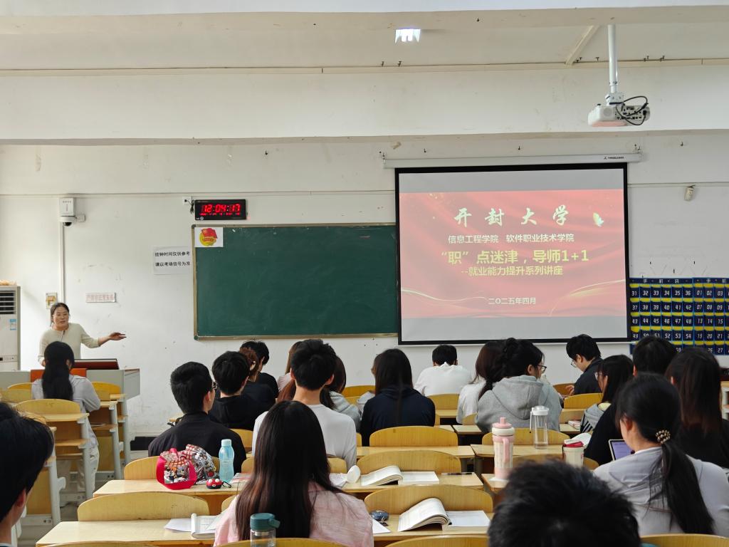 本站讯 为提升毕业生的就业能力,指导学生高质量就业,4月14日-4月27日,信息工程学院组织了《“职”点迷津,导师1+1》就业能力提升系列讲座。学院副院长李响、数学教研部主任赵展受邀为同学们开展讲座,提供宝贵的职业规划建议和就业指导。
