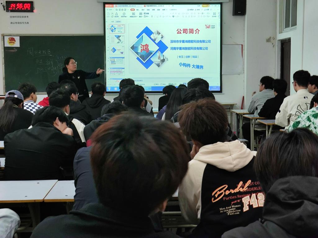 在宣讲会上,她以自身的成长经历为切入点,向在座的同学们分享了从校园到职场的转变过程,以及如何在竞争激烈的环境中脱颖而出。接着,她详细介绍了深圳宇星鸿精密科技有限公司的发展历程、主营业务、企业文化及未来发展规划。她鼓励同学们积极把握机会,勇敢追梦,创造美好的职业未来。通过这次宣讲会,毕业生们纷纷表示,对未来的就业方向也有了更明确的认识。