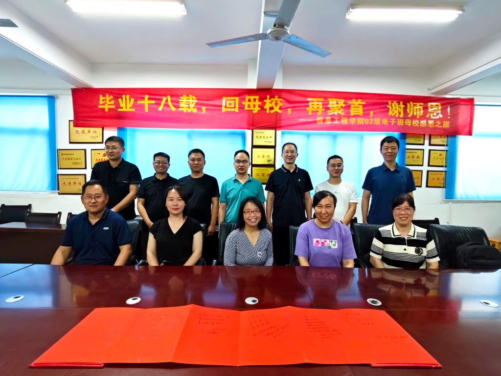 会议伊始,李院长对各位校友返校表示热烈欢迎,并从学科发展、课程建设、人才培养、师资队伍建设等方面向同学们介绍学院近些年发展的状况;曹老师追忆往昔,深情回顾了与同学们朝夕相处的美好时光,勉励大家多交流、互帮助;随后,高贻华代表毕业十八载的校友们宣读了致老师们的一封信,真诚表达了对母校悉心培育的感谢和对恩师谆谆教诲的感恩;会后,校友们参观实训室,并合影留念。