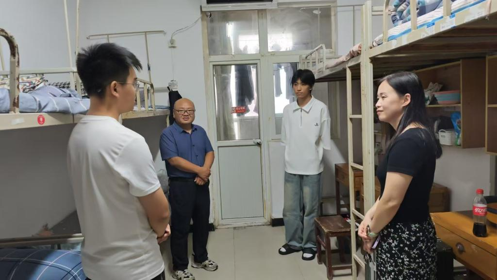 本站讯 9月7日下午,信息工程学院班子成员到宿舍慰问新生。走访过程中,学院领导深切关怀新生,询问住宿、餐饮、身体和生活情况,了解学生所需所求。