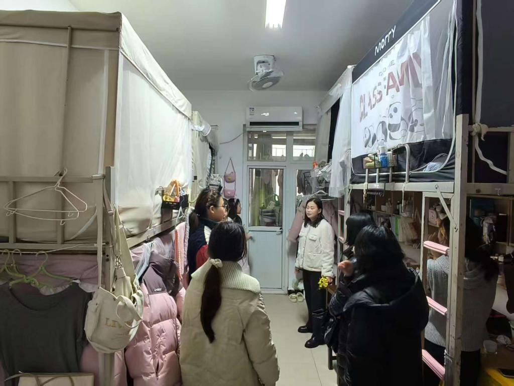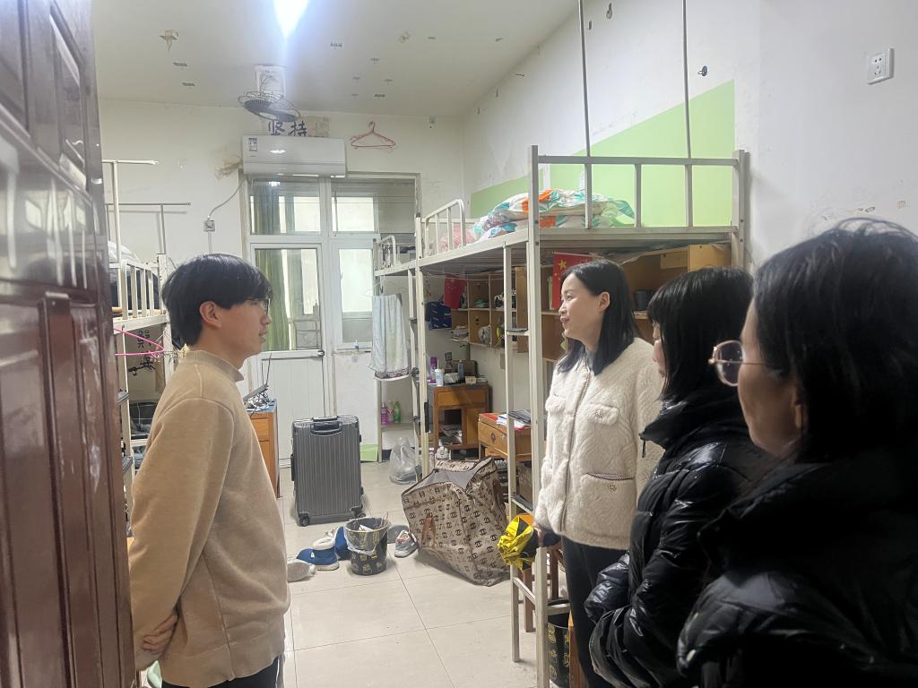 3月2日上午,武莹带领辅导员老师深入学生宿舍了解学生返校情况,并开展安全排查。她们仔细查看门窗是否牢固、有无漏水等安全隐患,强调用电安全,并叮嘱同学们在恶劣天气下一定要注意自身安全,避免外出,遇到紧急情况要及时与辅导员联系。同时,还鼓励同学们要积极调整状态,尽快适应新学期的学习节奏。