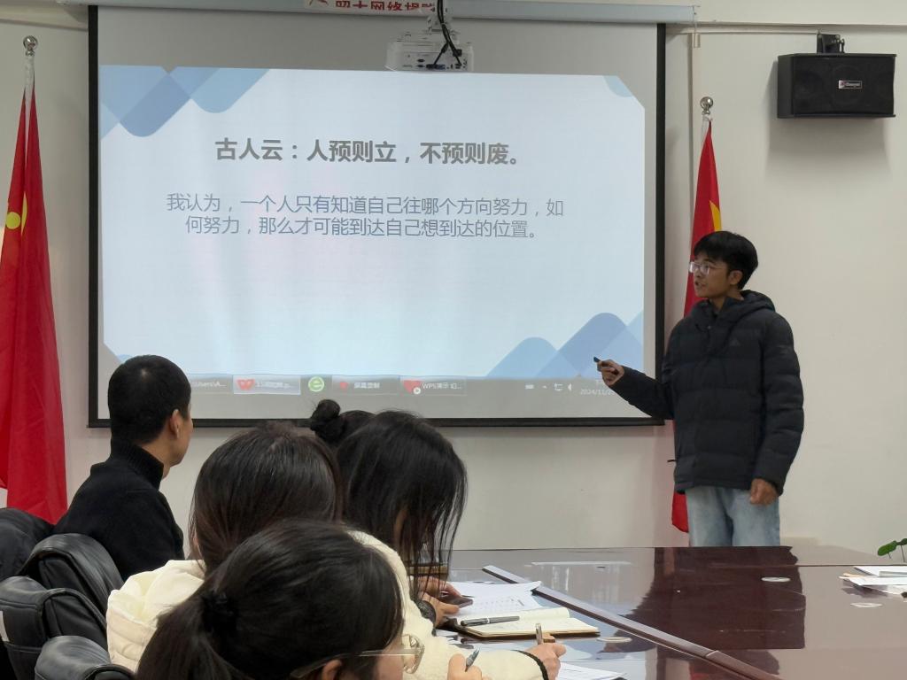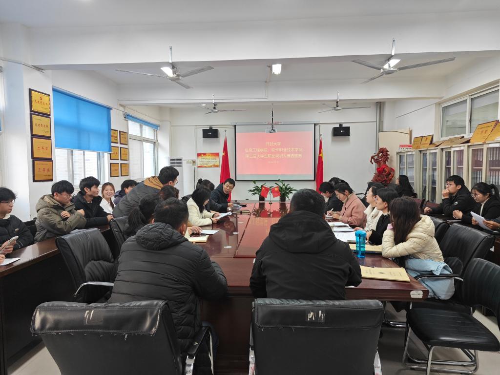 本站讯 为进一步增强大学生职业规划意识,引导大学生树立正确的成长成才观和择业就业观, 11月25日下午,信息工程学院(软件职业技术学院)在学院会议室举办大学生职业规划选拔赛。学院党总支书记武莹、副院长李响、王晓婷、赵展以及各教研室主任、辅导员老师参加。比赛由学院团总支书记贺钰主持。