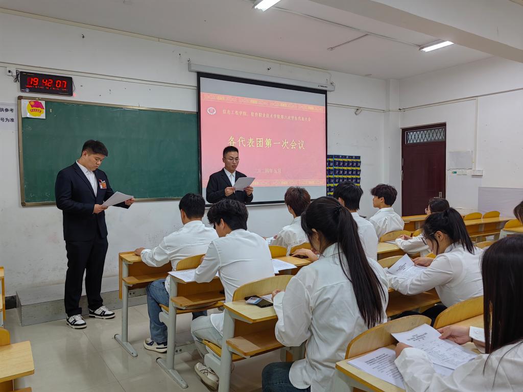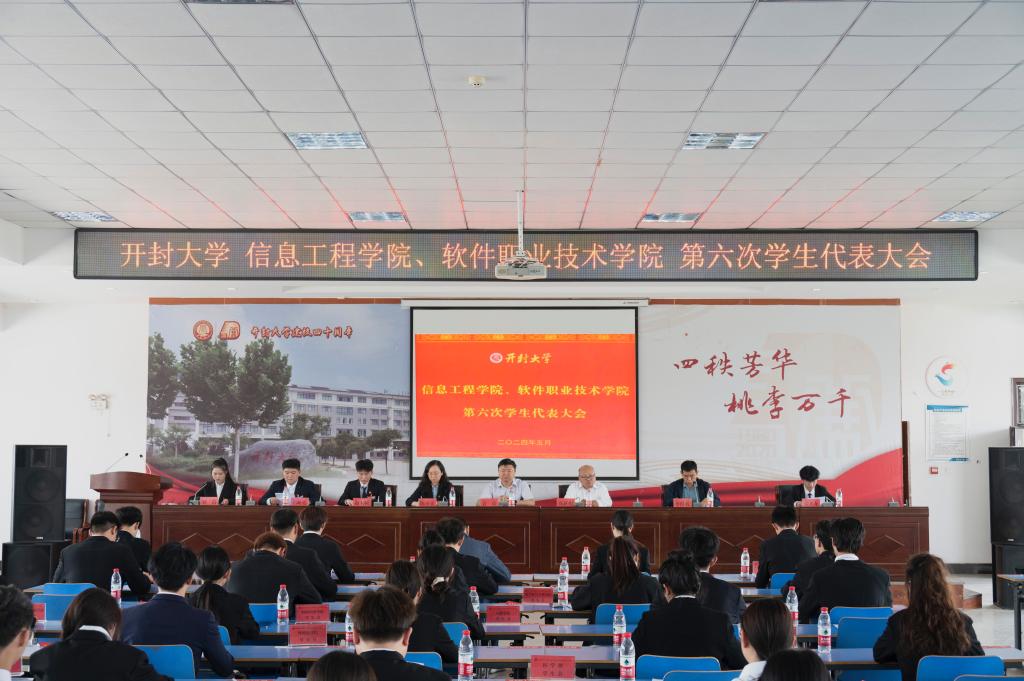 本站讯 殷殷嘱托萦绕耳畔,挺膺担当共谱新篇。在全校青年学子按照上级团组织、青联、学联组织下发的《关于深入学习宣传贯彻习近平总书记五四青年节对全国广大青年寄语精神的通知》要求,深入学习贯彻习近平总书记寄语精神之际,5月12日,信息工程学院、软件职业技术学院第六次学生代表大会在土木六楼报告厅胜利召开。校团委副书记陈彦霏,信息工程学院党总支书记袁震、院长张新成、党总支副书记李红礼出席了开幕式。学院团总支老师代表、辅导员老师代表,黄河水利职业技术学院信息工程学院学生会代表,我校各兄弟院部学生会代表、青年团干及学生干部代表和90余名大会代表参加了开幕式。