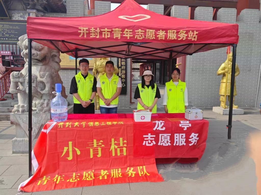 本站讯 5月5日,信息工程学院“小青桔”青年志愿者服务队按照团市委、市青年志愿者协会关于开展五一假期旅游志愿服务的通知,在天波杨府景点开展旅游志愿服务活动。